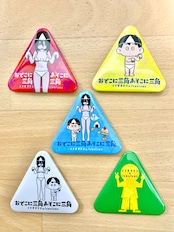 ぜひ、お友達や仲間と一緒に楽しんでいただきたいアイテム!この缶バッジをつけて、あちらこちらで「おでこに三角あそこに三角」の話題を広めましょう。ちょっとしたプレゼントにも最適です!