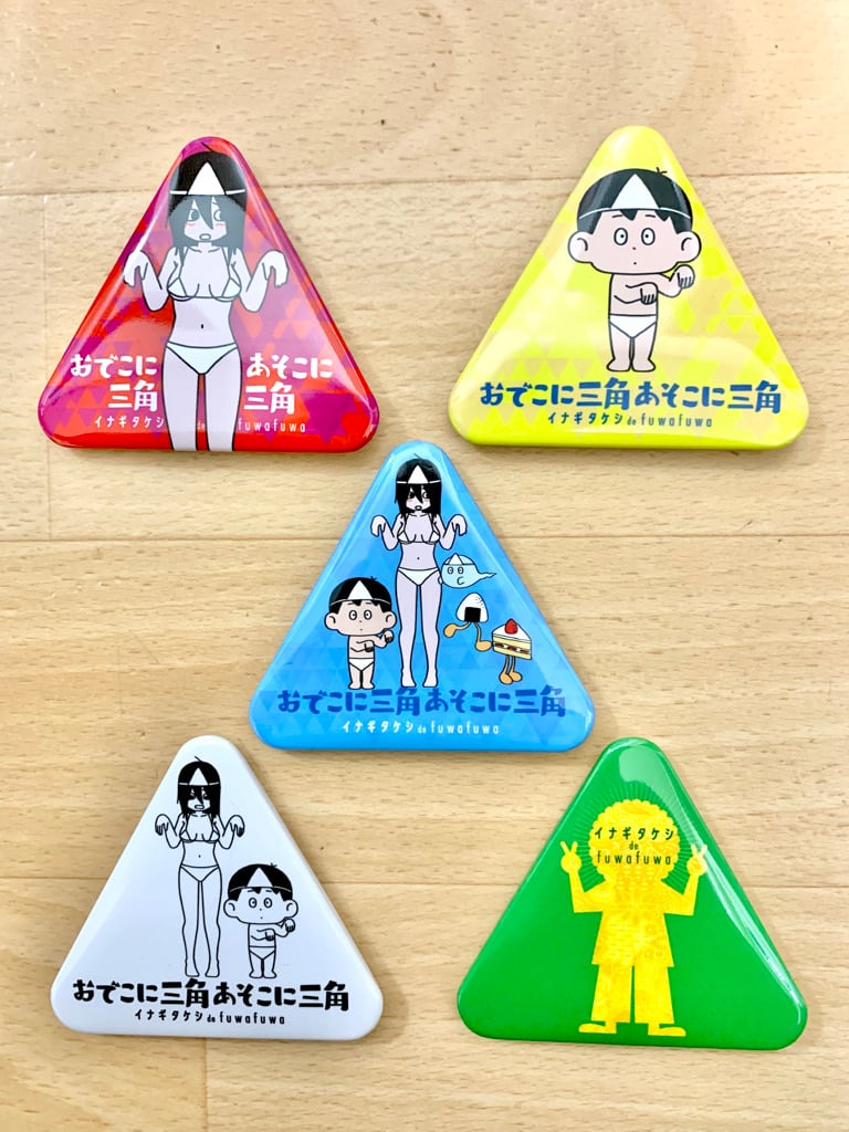イナギタケシ de fuwafuwaの新しいシングル「おでこに三角あそこに三角」のリリースを祝して、オリジナル三角缶バッジが登場しました!ファンにはたまらないデザインで、コレクションとしても最適です。