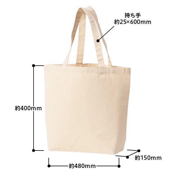 12oz(オンス)のしっかりした厚手生地で、たっぷり19L入るので、お買い物用のオリジナルエコバッグや、荷物が多くなりがちなジムやヨガバッグにおすすめ!たっぷり入る収納力で、買い物やピクニック、お出かけの際にも大活躍します。